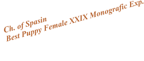 DALI DE BABYLUSCHE.01CAVILA DE BABYLUSGALAN DE BABYLUSCH.E 00 CH.I 02 CH.P 02CARMIÑA DE BABYLUSOBI D’ESPINAVESAEINA D’ESPINAVESAGIP D’ESPINAVESACH.E 96GREY D’ESPINAVESAJAVA D’ESPINAVESAKA D’ESPINAVESACH.E 08, CH. V.E.CENT11KAS D’ESPINAVESACH.E 06GOLFO DE LA CHAROLACH.E 11CHAROLA-LOLO DE BABYLUSCH.E 05SUSAN DE LA CHAROLACH.E 02, CH.P 03FM